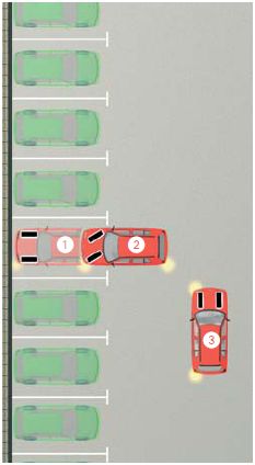 Rückwärts fahren in eine Lücke zwischen zwei parallel stehenden Fahrzeugen oder auf eine quer zur Fahrtrichtung markierte Parkfläche und anschließend halten.